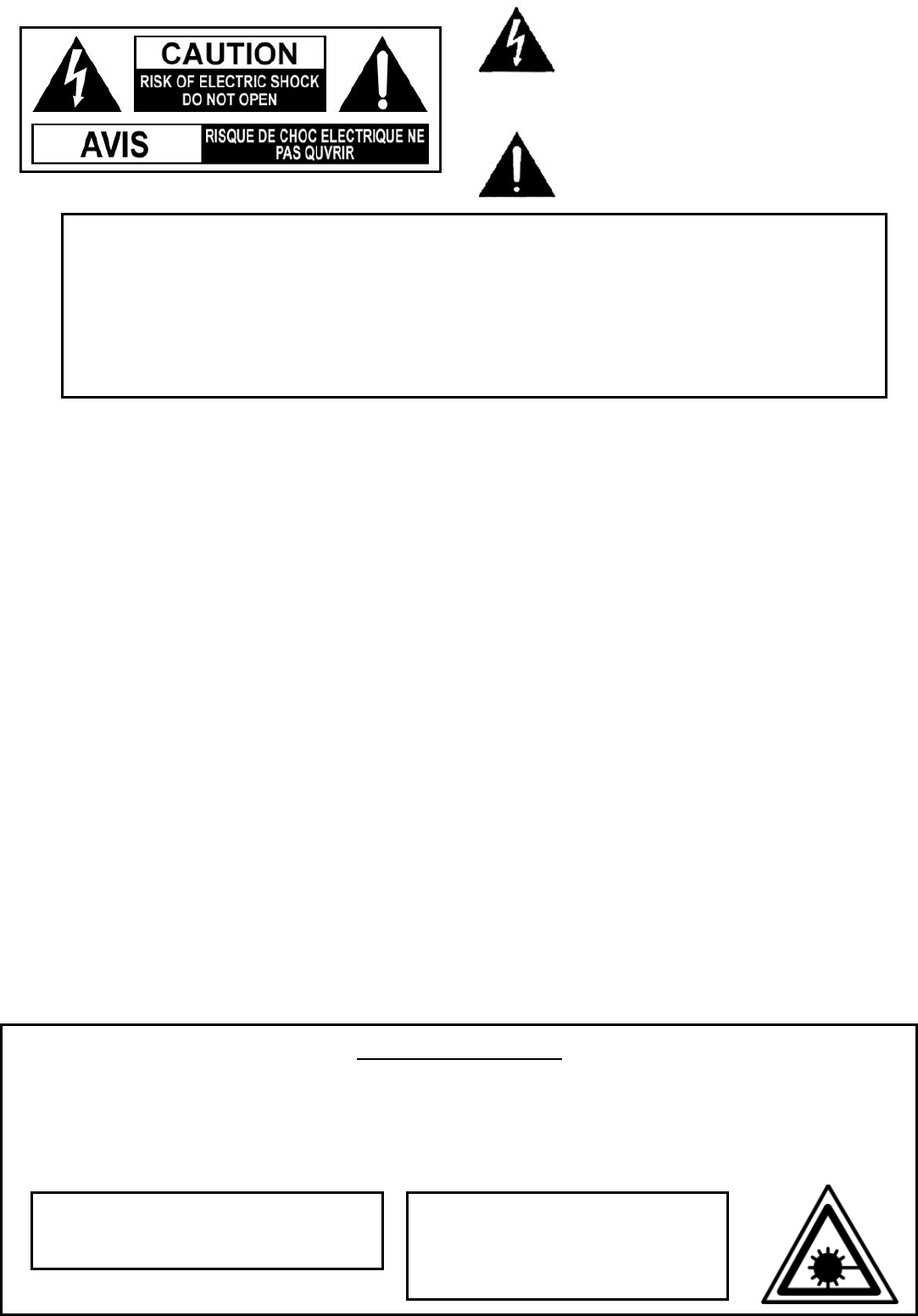 WARNING: POUR REDUIRE LE RISQUE DE CHOC ELECTRIQUE,
