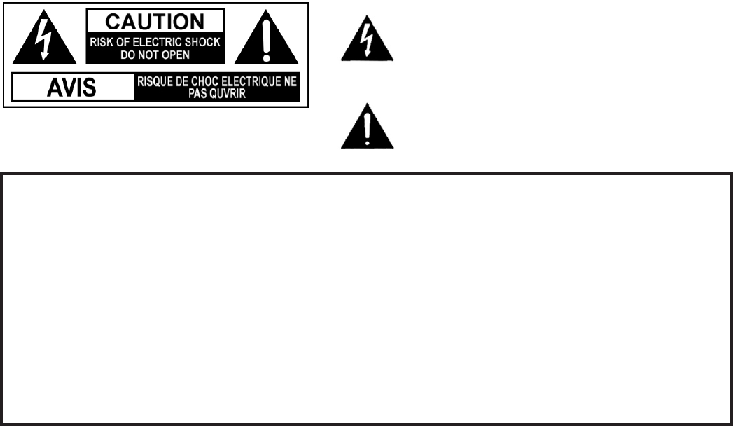 WARNING : TO REDUCE THE RISK OF ELECTRIC SHOCK,